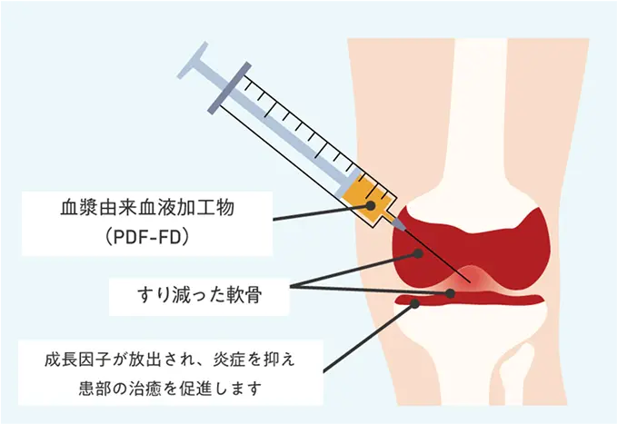 特殊な方法で濃縮・凍結乾燥し、関節や腱などに注射する再生医療の一つです。